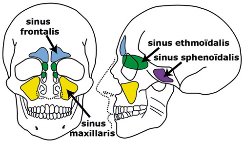 - 2 sinus frontaux