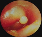 • l’otite suppurée : lorsque l’inflammation s’accompagne d’un épanchement purulent en arrière du tympan; à ce stade l’otite peut-être soit collectée, soit perforée (si il y a une perforation du tympan).
