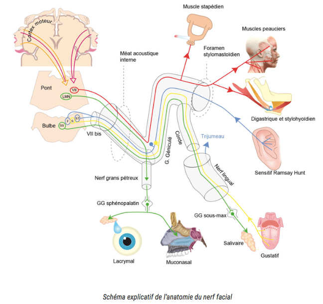 D’autres signes témoignent de l’atteinte des autres fonctions du nerf facial. On peut noter :