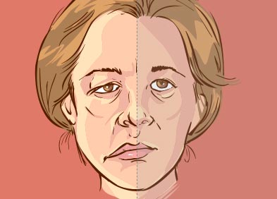 • Lors des mouvements volontaires, le patient ne peut plus, ou difficilement, bouger les muscles du visage du côté incriminé. Il lui est impossible de relever le sourcil, de plisser le front, de fermer l’œil, de gonfler les joues ou de siffler, le sourire est asymétrique.