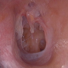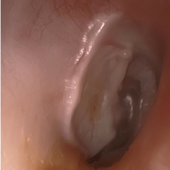 – une inclusion d’épiderme à l’intérieur du tympan, justifiant une intervention secondaire,